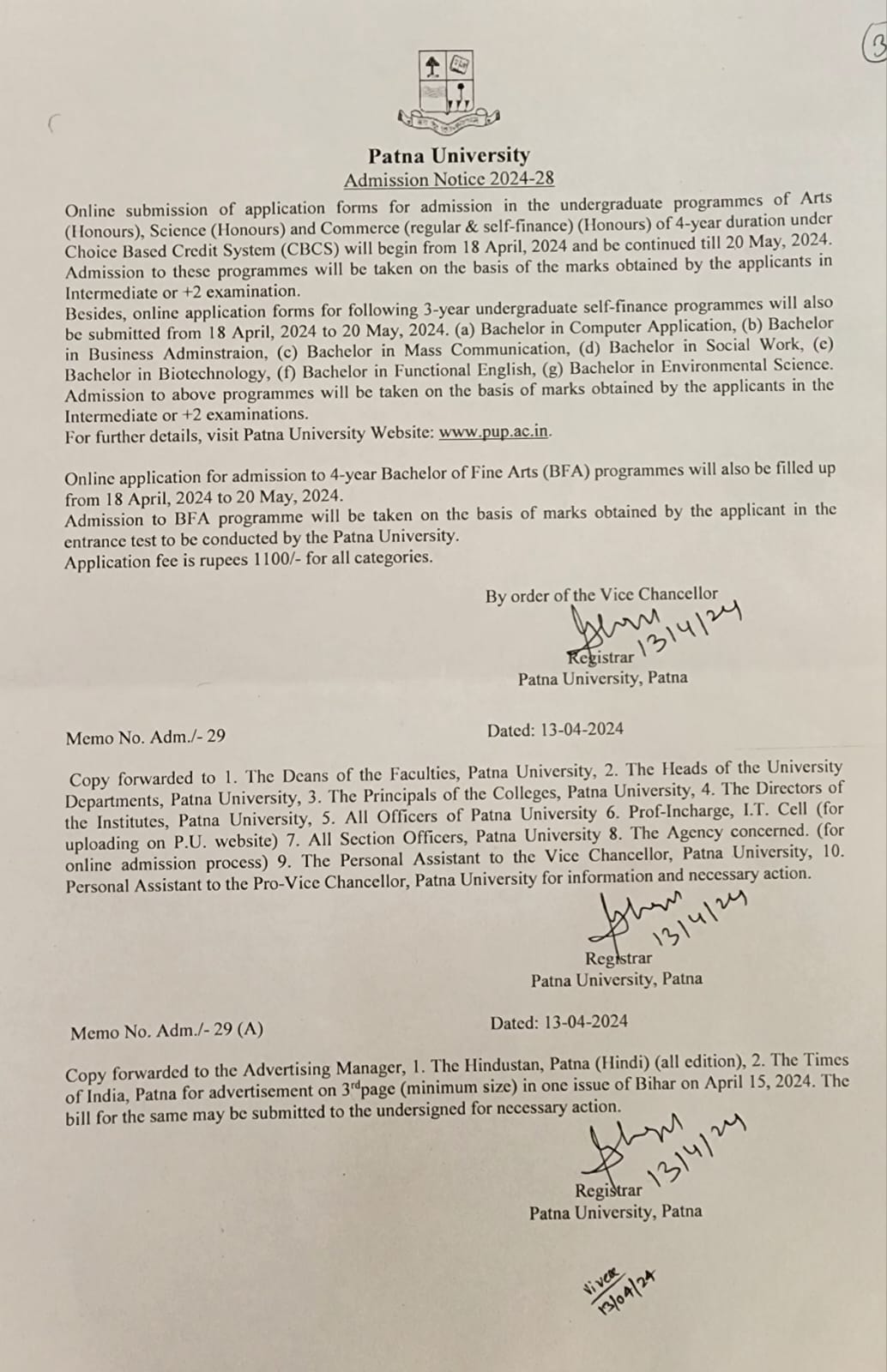 ::: Admission notice for students of BFA 1st, 3rd, 5th and 7th semester.