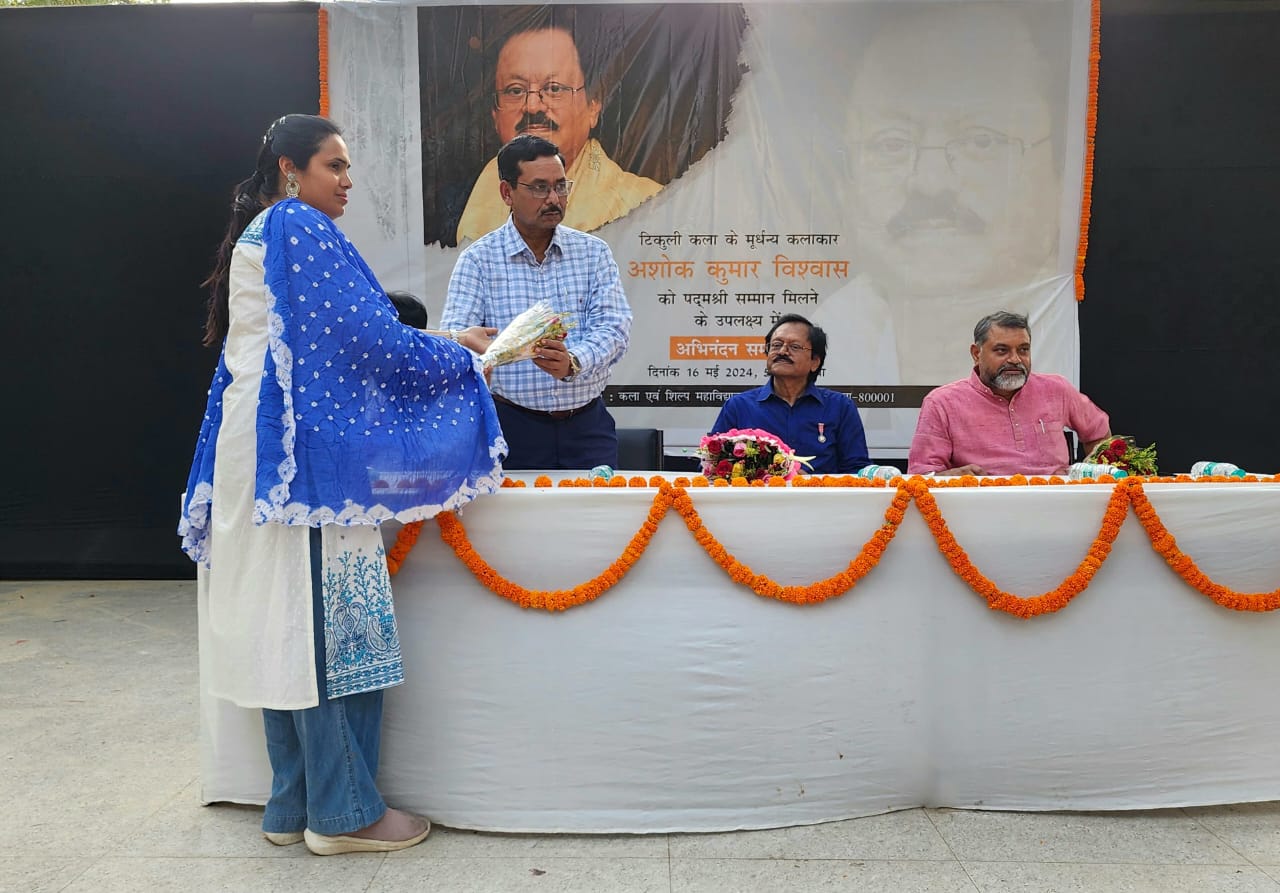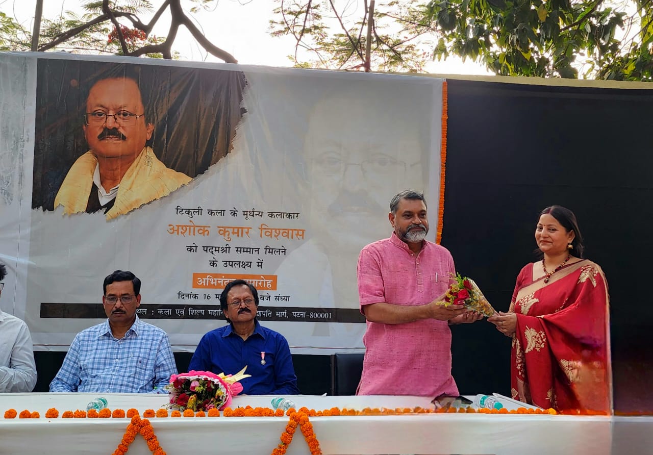 टिकुली कला के मूर्धन्य कलाकार श्री अशोक कुमार विश्वास को पद्म श्री सम्मान मिलनें के उपलक्ष में अभिनंदन समारोह । |