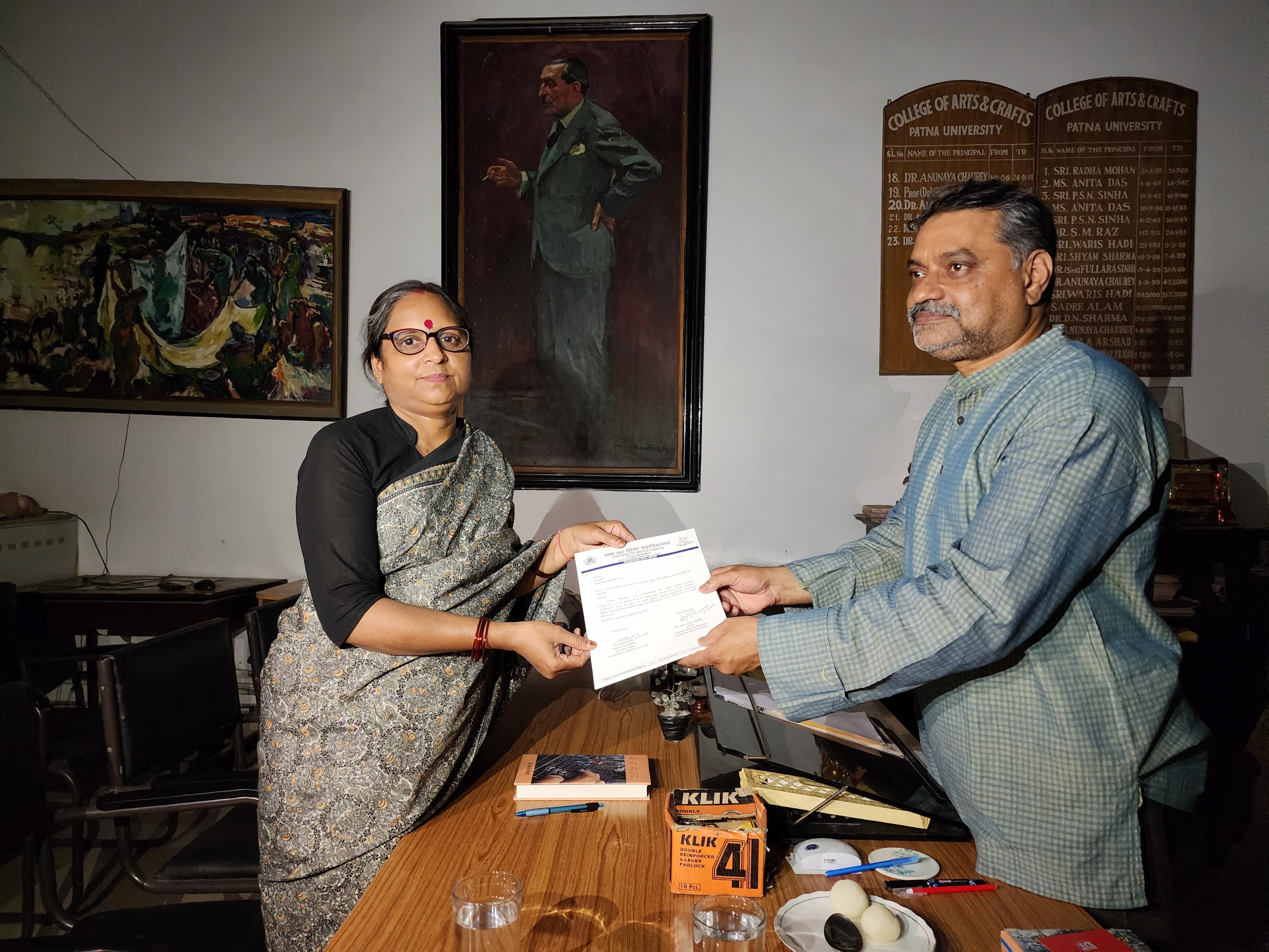 Dr. Rakhi Kumari taking charge as principal from Dr. Ajay Pandey.